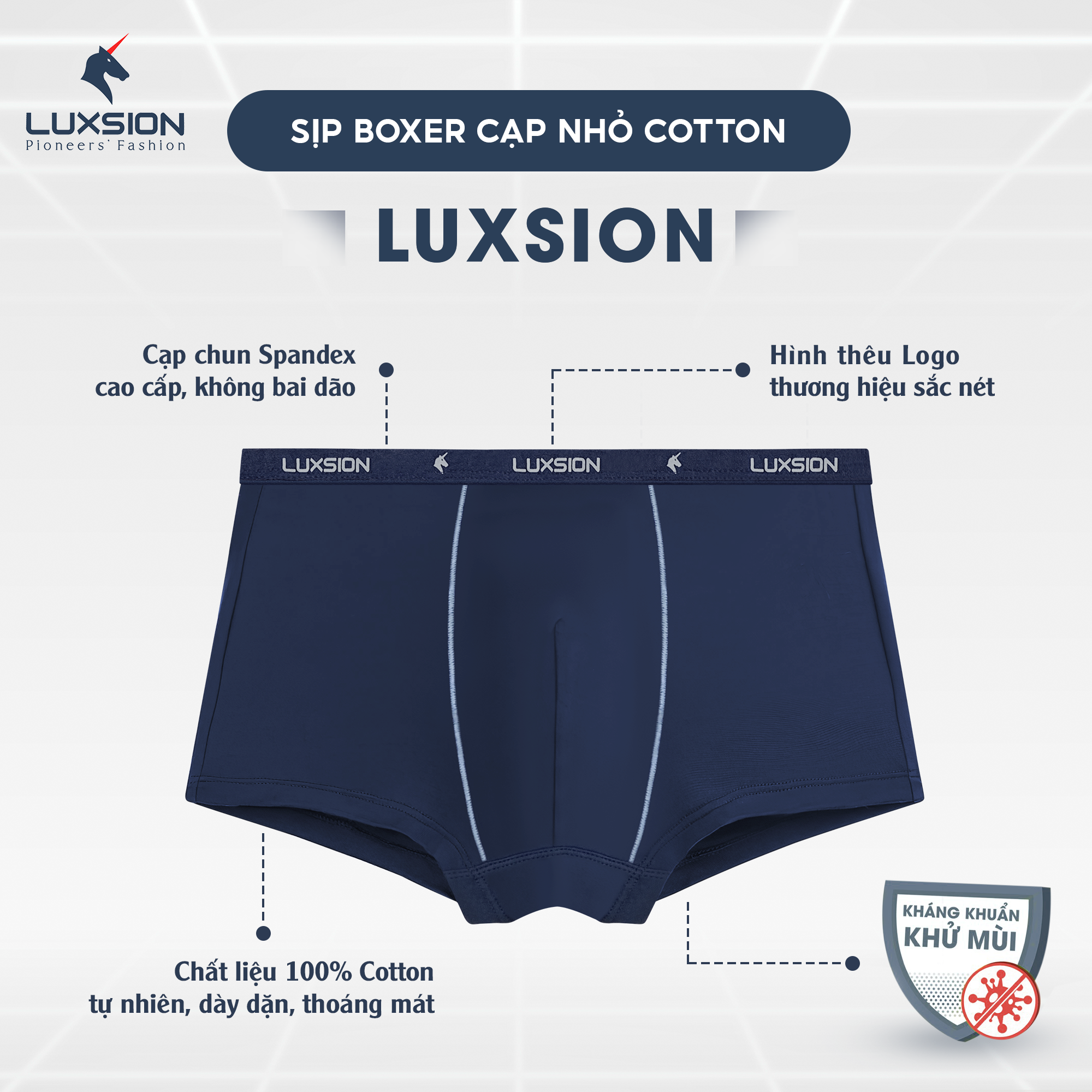 Quần sịp boxer Cotton thương hiệu Luxsion là món đồ không thể thiếu trong tủ đồ của phái mạnh, là sự lựa chọn hàng đầu.